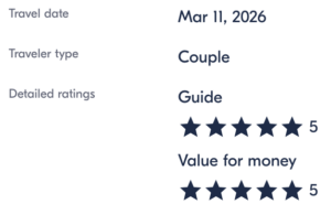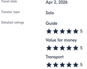 Wow! First off, let me just say how much of an incredible person Deborah is! She is not just your “average tour guide”. I had one of the best experiences in my lifetime on this tour. I booked it as a solo and the experience was priceless. Don’t even hesitate booking with Deborah…sure there are other similar tours, but I can promise you that you won’t get a tour guide as special as Deborah!