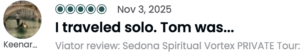 Viator review: Sedona Spiritual Vortex PRIVATE Tour: Connect, Meditate, & Unwind. So glad we did this tour. Tom was wonderful… knowledgeable and friendly. Felt like he wasjust another friend traveling with us.