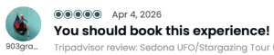 Mar 11, 2026 Sedona: Nighttime UFO & Stargazing Tom was amazing!